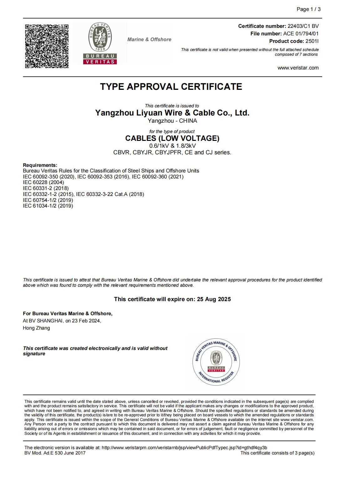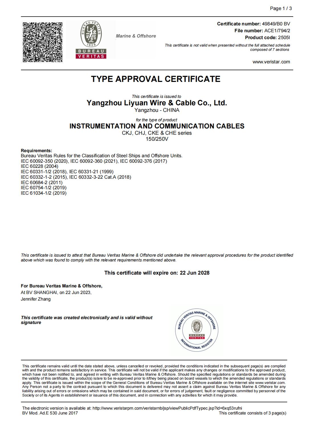 BV CLASSIFICATIE MAATSCHAPPIJ CERTIFICAAT
