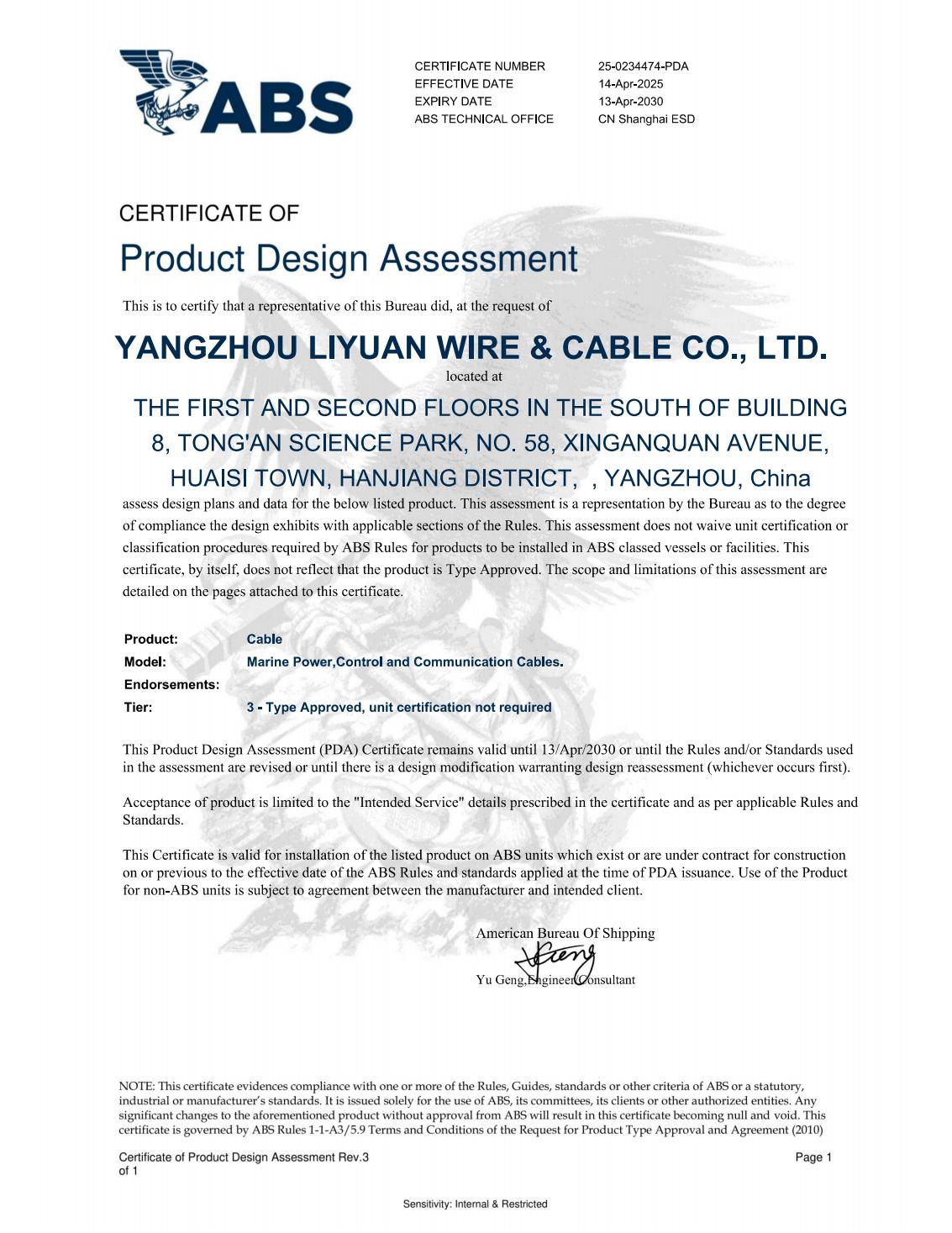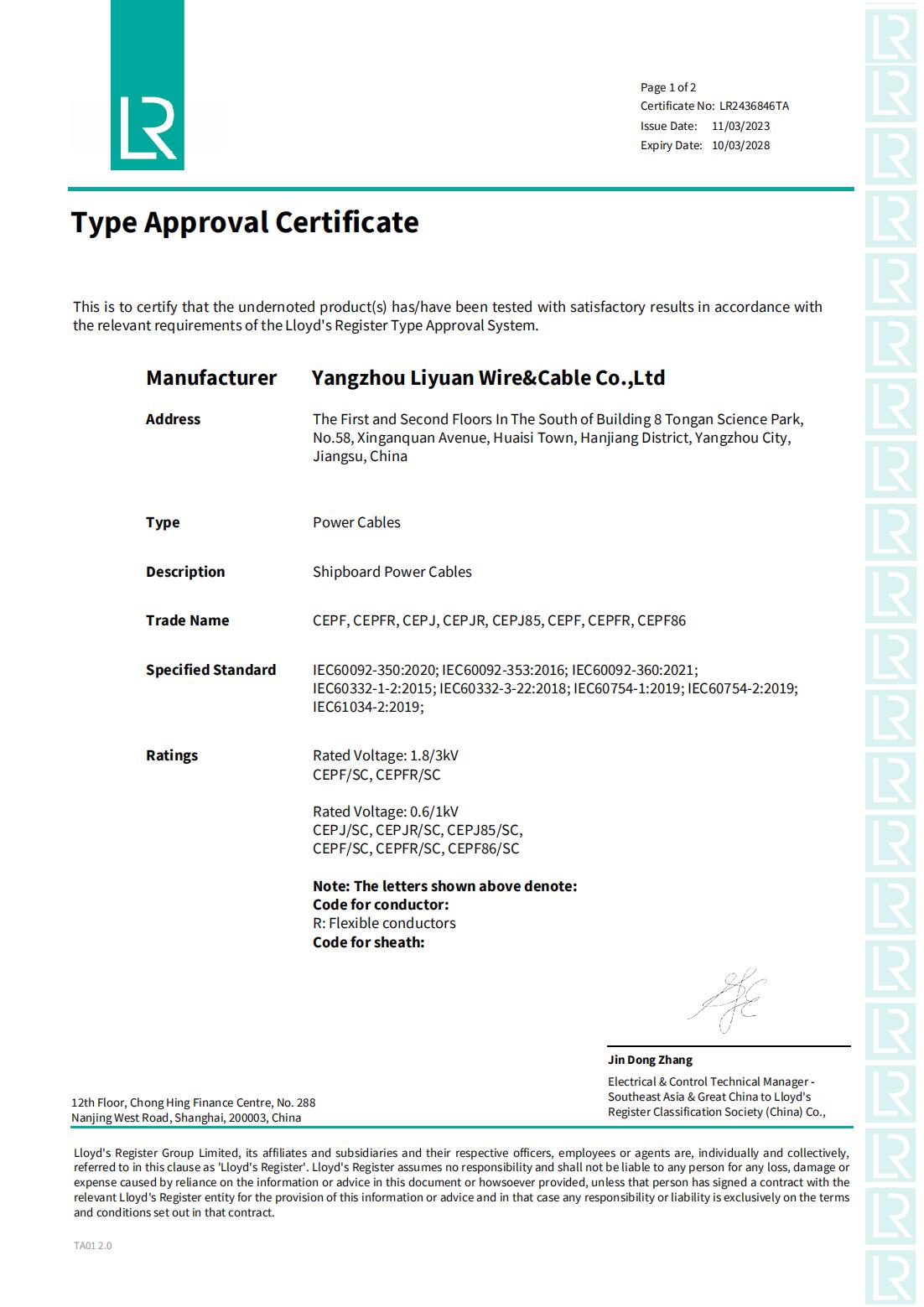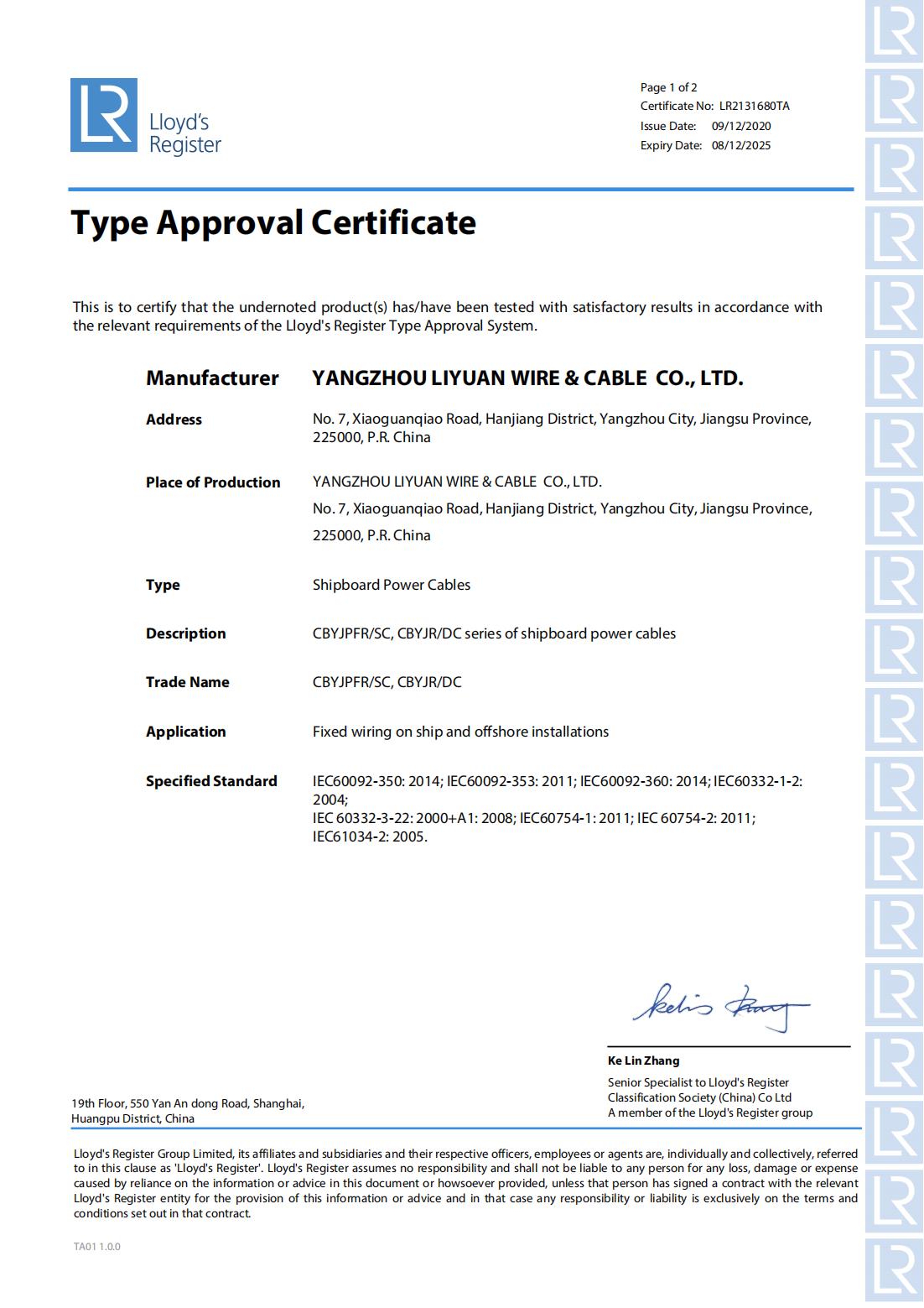 LR CLASSIFICATIE MAATSCHAPPIJCERTIFICAAT