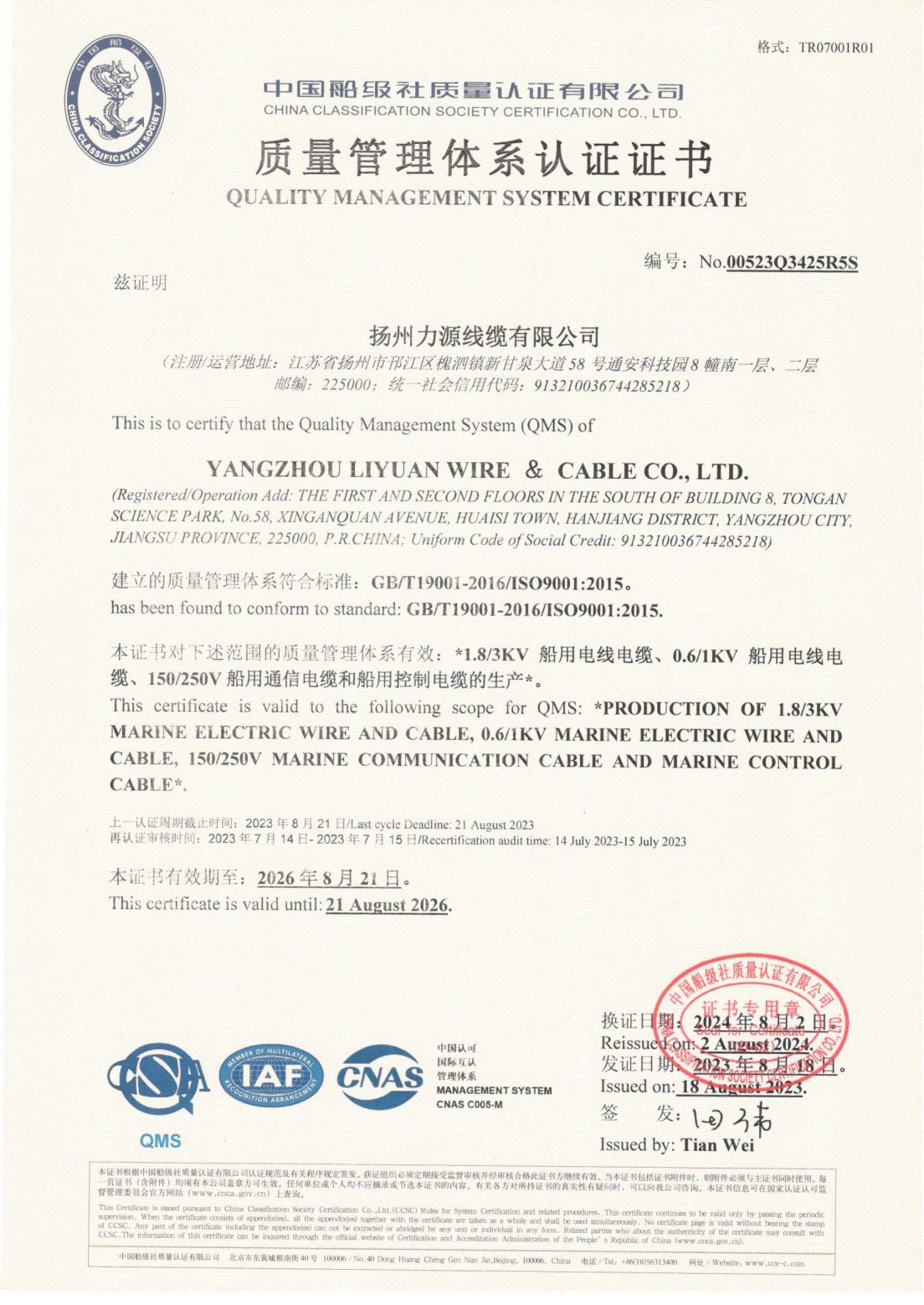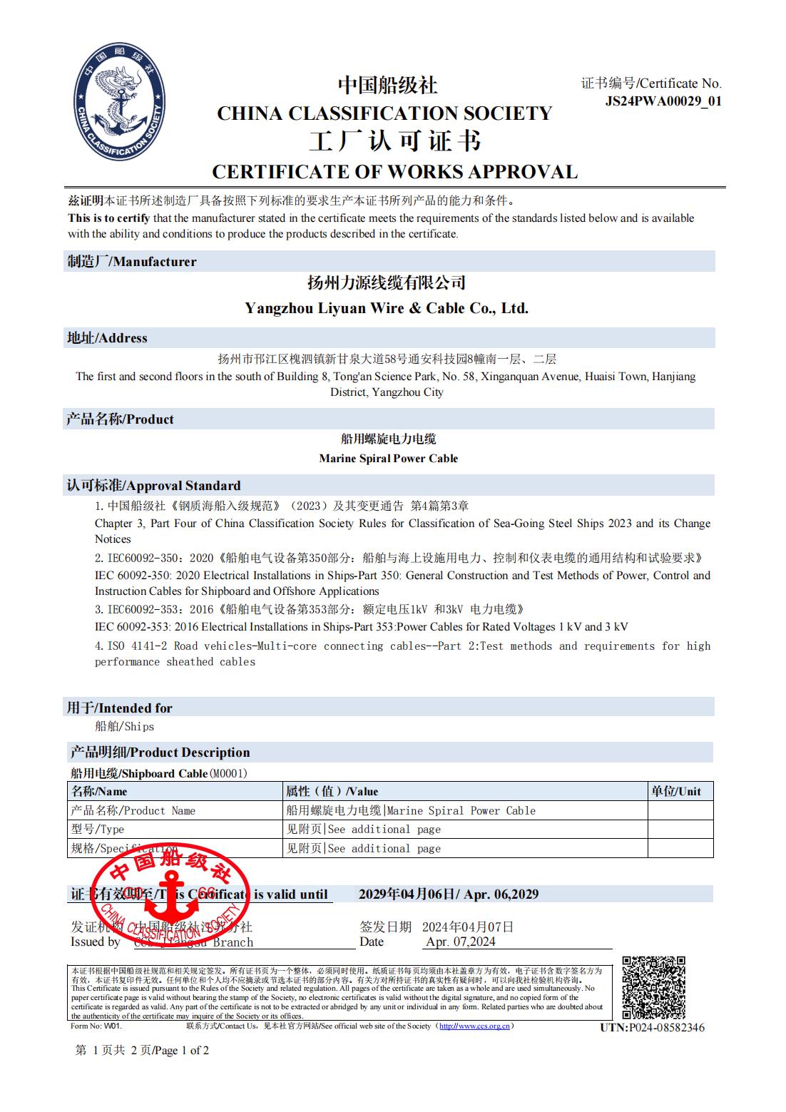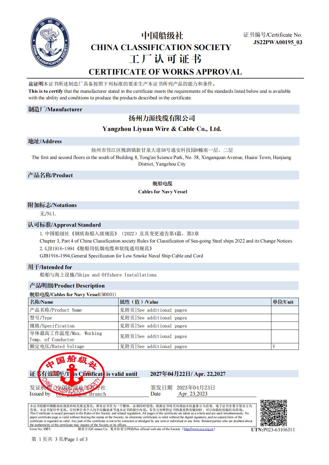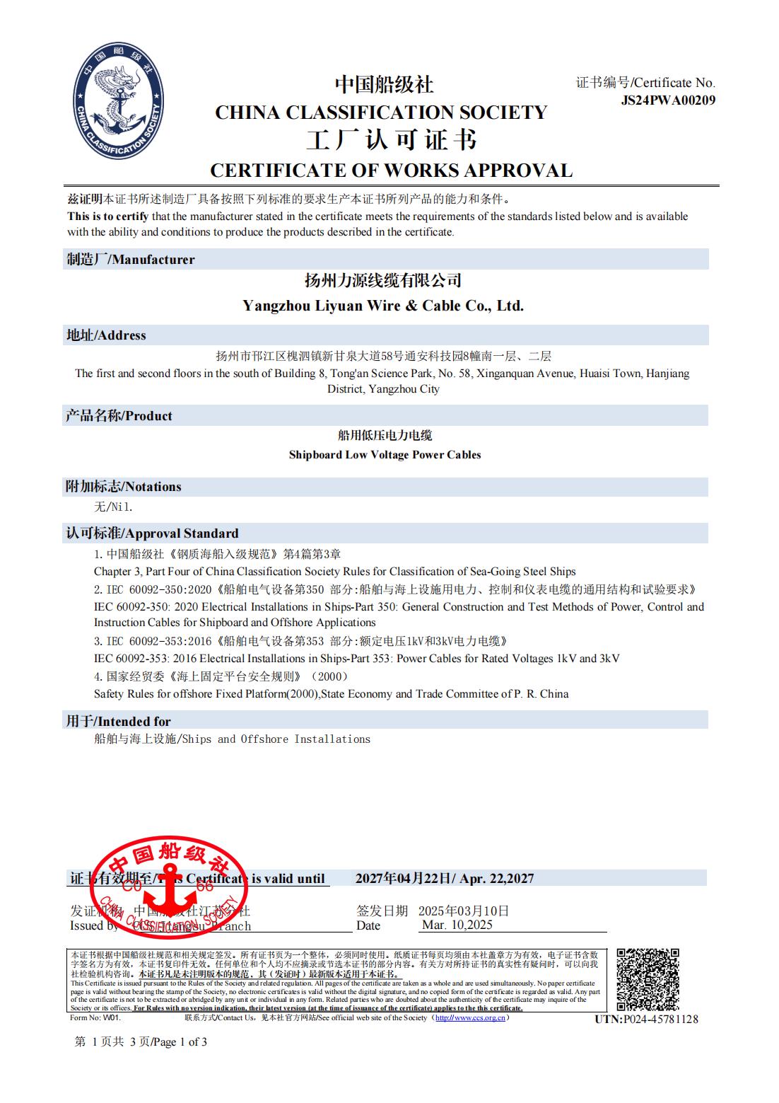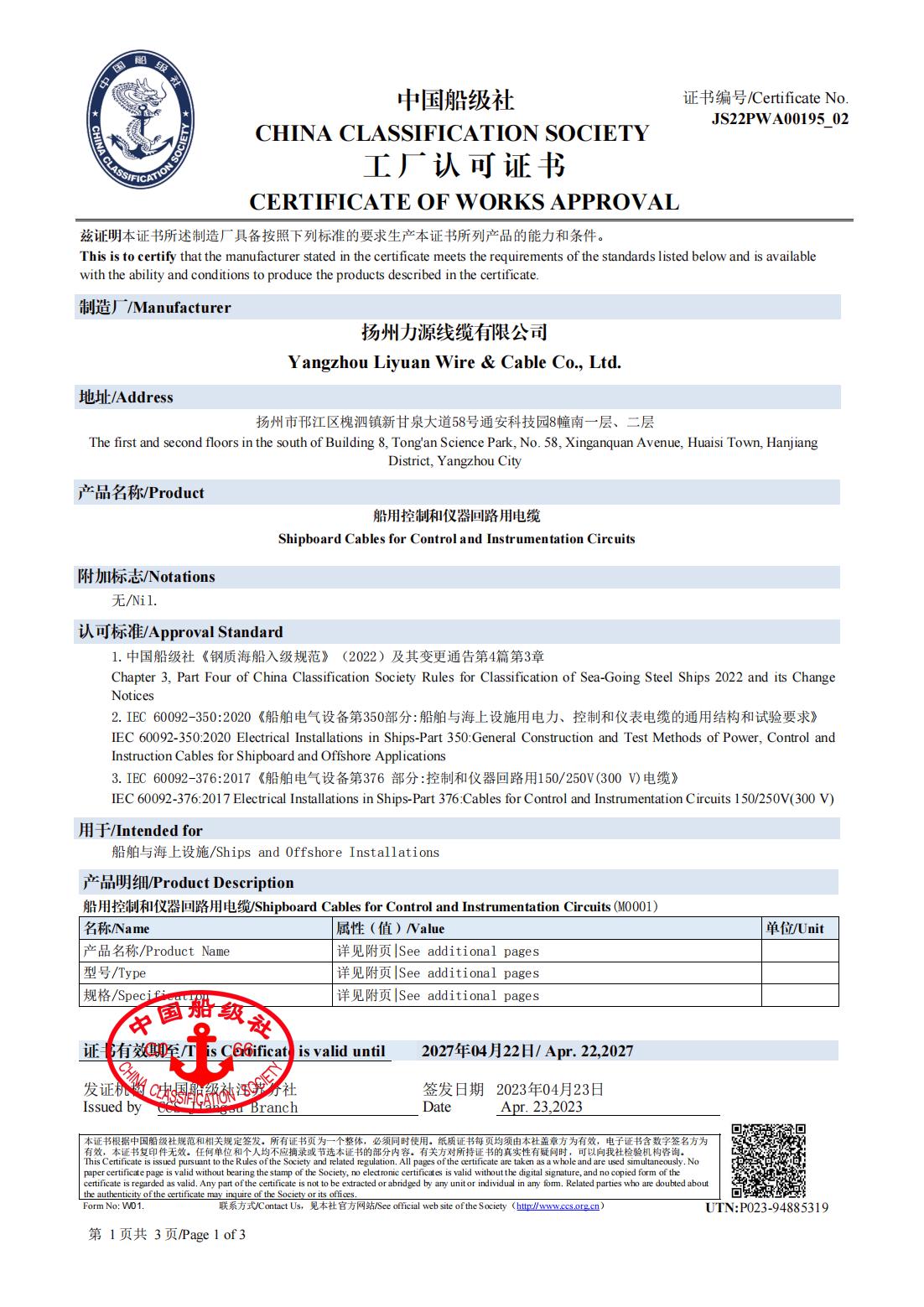 CCS CHINA CLASSIFICATIE MAATSCHAPPIJ CERTIFICAAT